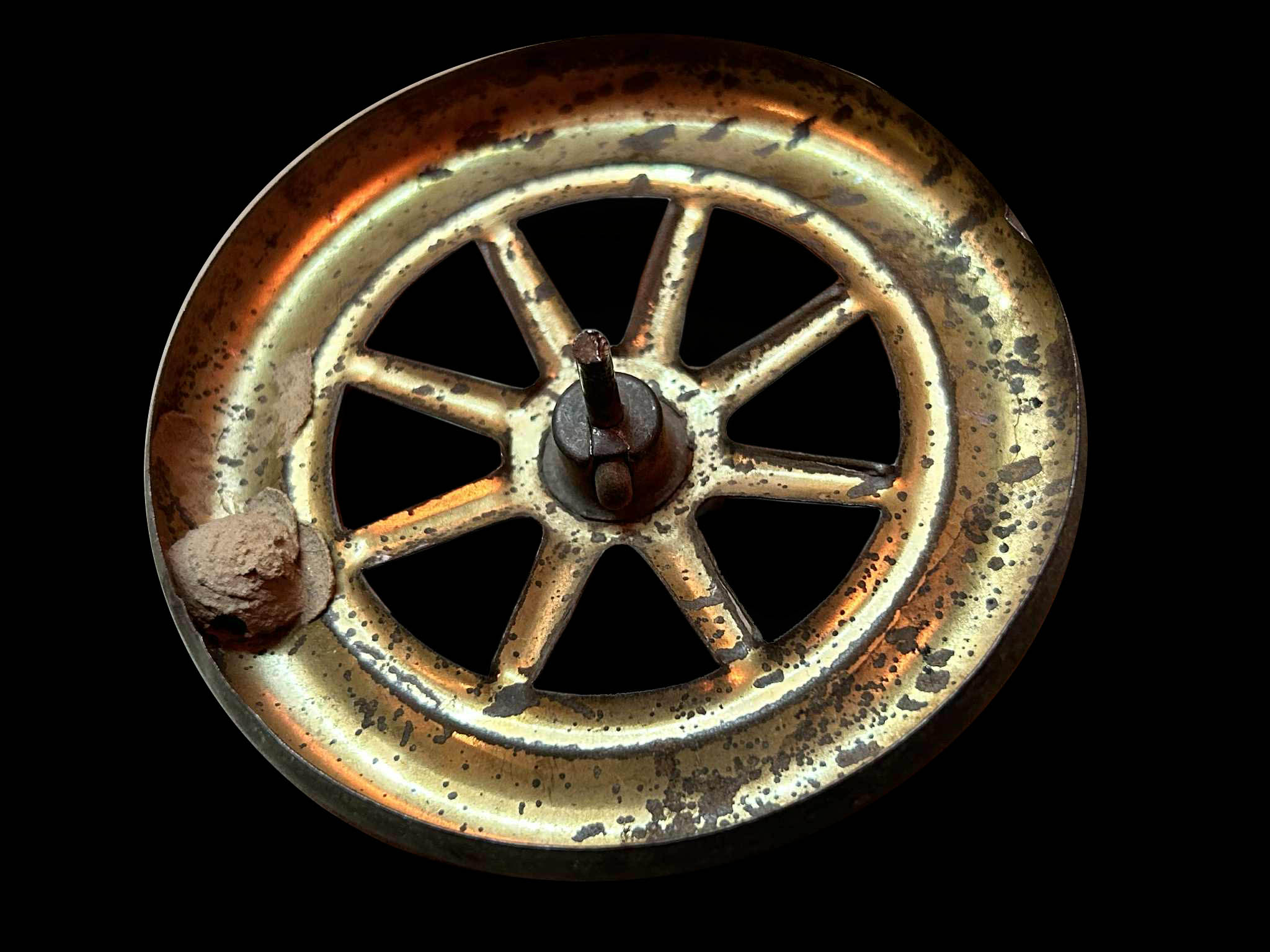 31 ottobre 2025. Destinazione. Stroncamento. Abbandono. Resilienza. Riuso. Recupero. Osservazione. Rispetto. In un tempo remoto una vespa ha deciso di andare a nidificare sopra una ruota di latta che aveva subito il distacco dalla parte più grande del gioco. Restando abbandonata in un sottotetto per parecchie decine e decine di anni. Non è dato sapere a quanto tempo risalga questo connubio che per la famiglia dell'insetto che lo ha realizzato è una costante ripetizione che continua imperterrita da tempi così lontani da poter anche precedere l'uomo.
