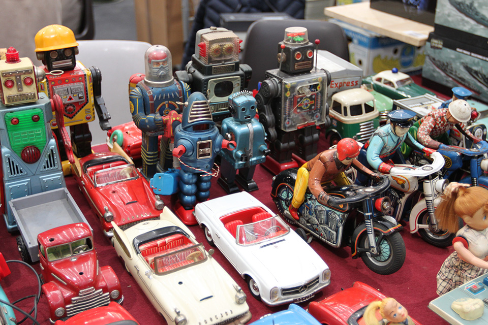 25 gennaio 2015. Uno dei criteri basilari della frequentazione di un mercato delle pulci è di arrivare presto. Il più delle volte occorre arrivare per primi. Altre volte non basta neanche essere presenti se troppe persone si accaniscono tutte contro un solo venditore. Ma cosa succede quando ci si sveglia troppo tardi? Eh allora lì occorre aver intessuto bene le relazioni... Un 'trovarobe' ha attinto negli scorsi giorni ad un solaio da cui ha potuto trarre fuori decine e decine di giocattoli, conservati con le scatole originali ed appartenuti ad alcune generazioni di una stessa famiglia. Il grosso risale agli anni '50 e '60, ma c'è stato altro... Questi i passaggi: un acquirente avvolto dalle tenebre alle 4:00 del mattino porta via un MECHANIZED ROBOT, un MR MAC POOCH ed una MERCEDES 300 SL; un secondo personaggio, giunto subito dopo, prende di mira una quindicina di scatole e le fa sue, con il disappunto di una terza persona che mi riferisce poi che, se fosse arrivato prima, avrebbe preso solo un paio di quei quindici giocattoli (affermazioni dettate dalla stizza o vero sentire?). I magnifici 15 li vedrò nei prossimi giorni, quindi potrei comprendere la bontà del commento di chi li ha persi; altri attacchi quella esposizione di una bancarella ferma agli anni '50 li ha subiti ad opera di tanti altri cercatori, collezionisti e curiosi. Erano le 7:30 e quasi tutto era andato via. Io sopraggiungevo ancora ignaro. Ricevo la telefonata di un amico che mi informava di tutto e, dopo tanti ragionamenti, se andare o meno, decido di curiosare; alla stessa stregua di chi, dopo non aver partecipato al proprio cenone di capodanno, si reca in una nuova casa ed anziché ballare o brindare, comincia a guardare il tavolo del cenone tra i piatti di portata ormai senza contenuto e senza forme, e tenta di desumere il menù. Tutti hanno mangiato, c'è un solo affamato.