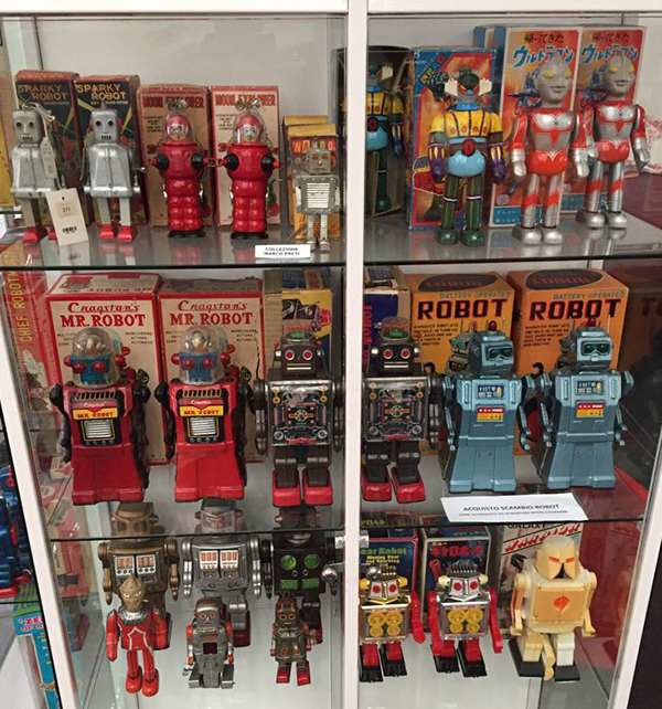Quando infatti i giocattoli in latta cominciano ad avere troppa plastica, perdono quel senso del bello che me li fa così tanto apprezzare. Se però, come in questa mostra i materiali sono ben altri, tutto viene rimesso in gioco ed è facile restare irretiti non necessariamente nella sola chiave nostalgica di chi li ha visti da bambino. Anche se non ci si è arrivati in "zona Cesarini" come me che avevo 4 anni quando volgeva al termine, non si può restare indenni da tanta bellezza!