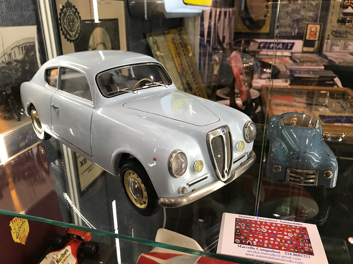 A fronte dello spunto dato dalla presenza di quest'auto, seguono foto a tema che la mostra evento offriva: splendide pubblicazioni della testata AUTO ITALIANA, acquistate per l'occasione, che negli anni 1947 e 1948 reclamizzavano questo modello in copertina ed all'interno di alcuni numeri della rivista. Un modello della INGAP denominato INGAP 1100 SS lo aggiungo io dalla mia collezione per completare la suggestione.