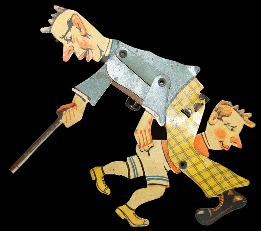Mi riferisco proprio al book fotografico di Madonna, incentrato su fantasie erotiche spinte della pop star, la cui uscita commerciale risale a ben 25 anni fa. Nel frattempo di sesso sotto i ponti se ne è consumato tanto, ma farebbe ancora gridare tanto allo scandalo. Non ha tutte le pagine in latta come una ANGURIA LIRICA. dispone solo di una cover in latta, alluminio satinato, non lucido nè spazzolato. Aprendo il libro si scorgono queste prime parole: “Questo libro parla di sesso. Il sesso non è amore. L'amore non è sesso. Ma la cosa migliore è quando questi due mondi si uniscono.” Esistono svariate edizioni, differenti per la lingua scelta in abbinamento alle immagini, tra cui la lingua primaria l'inglese della prima edizione (150.000 copie vendute nel primo giorno di uscita); ma anche quella in italiano di cui dispongo di due copie e spiegherò il perchè; in francese ed ancora in spagnolo (dovrei dire meglio in ispanico, dato l'amore di Madonna, ma forse allora dovrei dire dato il sesso per madonna, e lì le cose si complicano);non manca la versione per il mercato asiatico in giapponese. Fosse uscito oggi forse, avrebbe avuto anche una edizione in cinese e, sono certo, avrebbe creato nuovo e diverso scalpore, non solo per l'età adesso più avanzata della pop star. 9 luglio 2017. "En haut la main, salopard!" Giocattolo a molla della tipologia che vibra e danza su se stesso effettuando delle piroette sporadiche. un po' come i ballerini Schuco. Realizzato nella Germania Europea dell'Ovest non in quella Federale dell'Est, in un periodo in cui questa distinzione aveva ancora un senso. Ha una grafica che non lascia indifferenti. Trovato in un mercato estivo. Non mi andava di lasciarlo sopra un tavolo spoglio di altri giocattoli. Ora dimora in buona compagnia di clown litografati dalle mansioni più diverse.