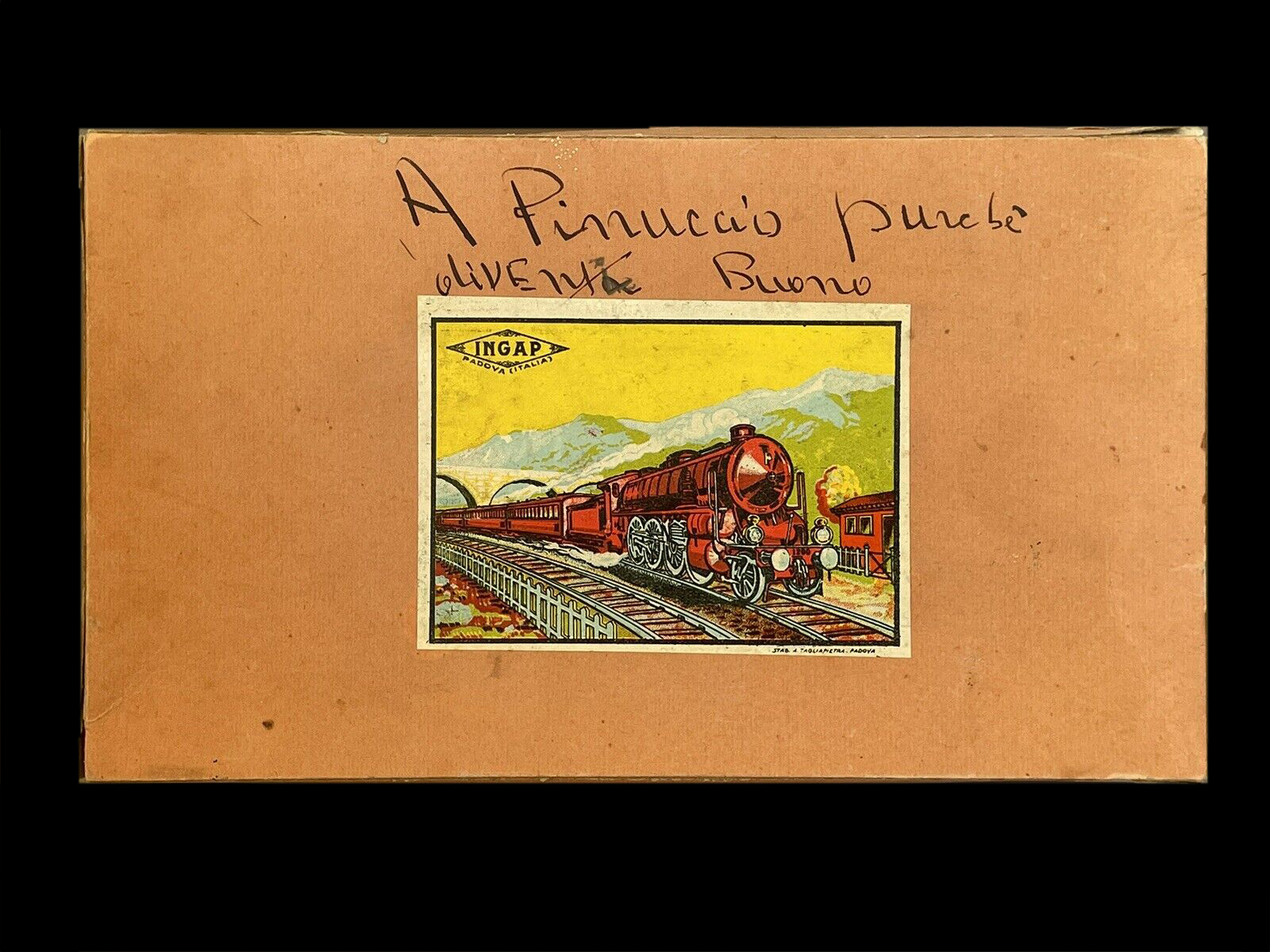 30 settembre 2023. Immagino che Pinuccio sia stato una furia da piccolo... questo fa intendere la scritta d'augurio che il donante ha ritenuto doveroso precisare scrivendolo a penna, con una condizione temporale, posta sulla scatola di questo treno Ingap, che fa riflettere su cosa possa essere in effetti poi avvenuto.